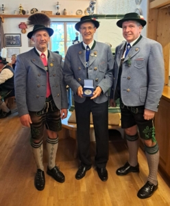 Der Trachtenverein D’Wendlstoana Thanning freut sich mit seinem Mitglied Paul Miller, der vor Kurzem bei der diesjährigen Herbstversammlung des Loisachtaler Gauverbands mit der Gauehrenmedaille in Silber vom Gauvorstand Sepp Ponholzer ausgezeichnet wurde.